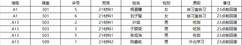 2.若在检查时间段内不在宿舍: