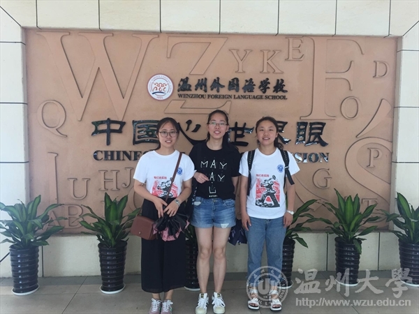 在七月三号这个阳光明媚的日子里,我们开始了我们化材之光暑期社会实践队的第一次外出采访,我们小队负责的是温州外国语学校的陈欢老师。在15化本周怡婷学姐的带领下,我们早上十一点到达学校,并和老师见面采访。