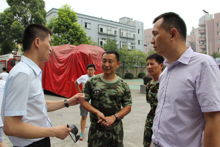 今天,前来慰问的领导给本次暑期社会实践带来了不少关心和支持,不仅积极参与了我们的活动,而且离去前还鼓励我们好好实践。在消防局的实践活动不仅加深了作为化学专业学生和消防官兵关于对方领域的知识了解,更可贵的是实践加深了实践队员们和消防官兵们之间的友谊。