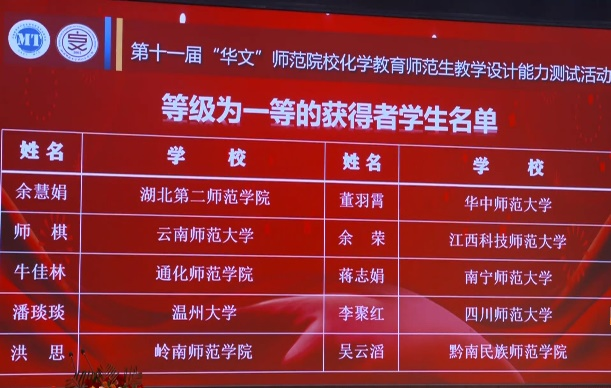 8月20日-22日,由中国教育技术协会微格教学专业委员会主办,山西师范大学现代文理学院承办的第十一届“华文”师范院校化学教育师范生教学能力测试与交流展示活动落下帷幕。永利高度重视本次比赛,积极备战全国比赛,永利八位参赛学生在陈迪妹、王秀杰、叶剑强、蔡晓庆和武晓岚等老师的精心指导与反复打磨下,最终获得了一等奖7项、二等奖9项的优异成绩。其中“教学设计能力测试”一等奖4项、二等奖4项;“教学能力测试与交流展示”一等奖3项、二等奖5项。