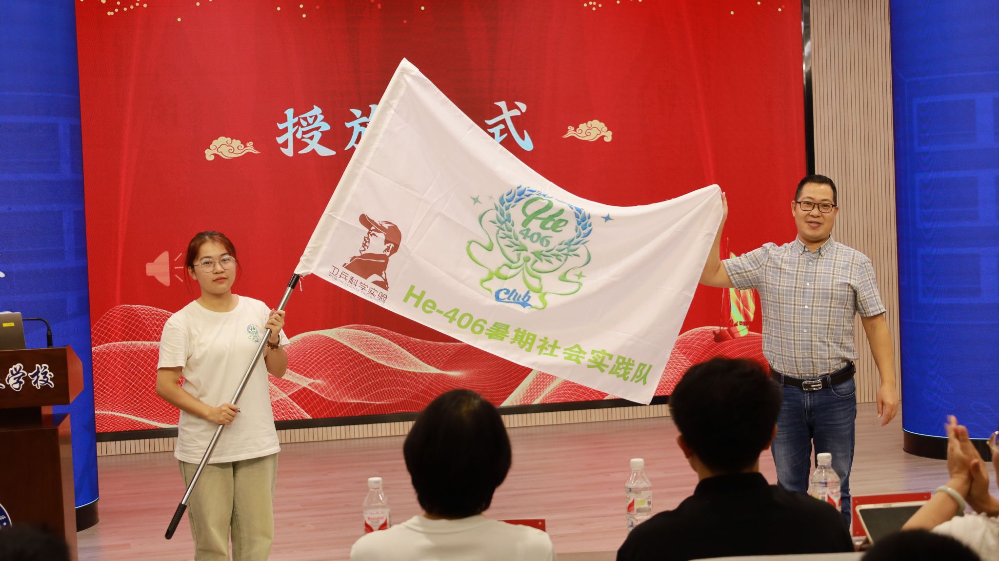 在庄严氛围中,永利3044集团官网化材学院教工党支部书记刘妙昌为实践队颁授队旗,标志着实践活动的正式启动。