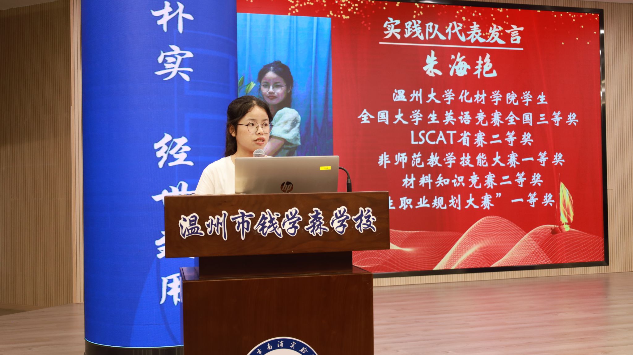 永利3044集团官网He-406暑期社会实践队队员代表朱海艳向在场营员介绍了实践队的活动特色、师资队伍、课题方向、实验安排等,让营员对实践队有了更加全面和深入的认识。