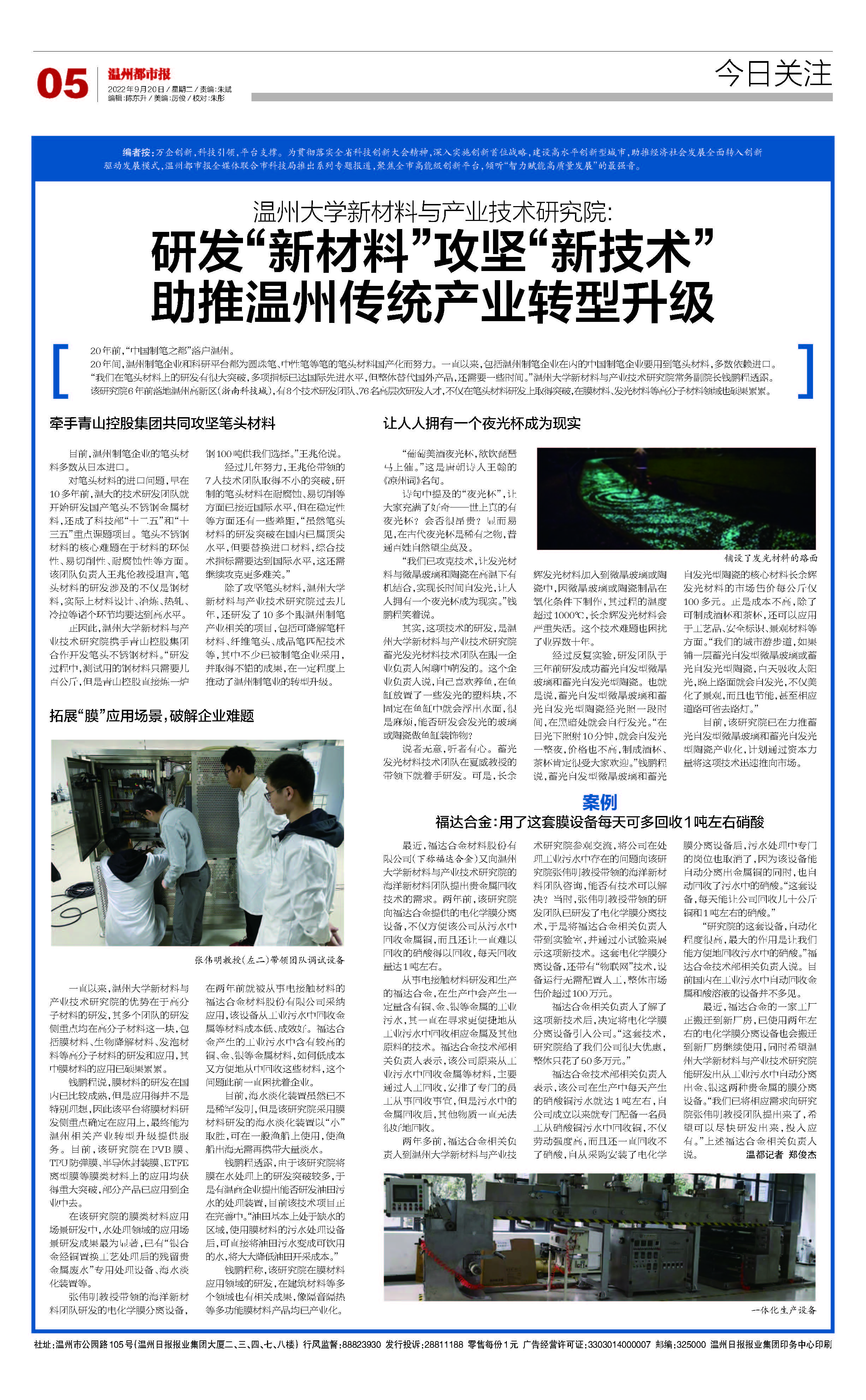 编者按:万企创新,科技引领,平台支撑。为贯彻落实全省科技创新大会精神,深入实施创新首位战略,建设高水平创新型城市,助推经济社会发展全面转入创新驱动发展模式,温州都市报全媒体联合市科技局推出系列专题报道,聚焦全市高能级创新平台,倾听“智力赋能高质量发展”的最强音。