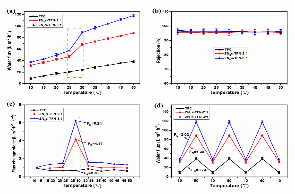 图9. 构建国际首例的大通量温敏性纳米胶囊复合聚酰胺纳滤膜