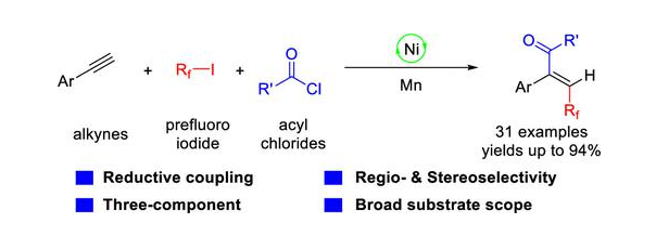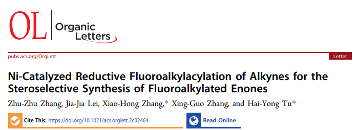论文题目:Ni-Catalyzed Reductive Fluoroalkylacylation of Alkynes for the Steroselective Synthesis of Fluoroalkylated Enones.