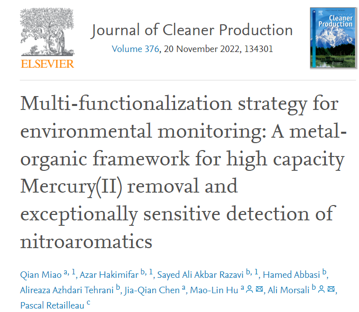 相关科研成果发表于近期的Journal of Cleaner Production (DOI: 10.1016/j.jclepro.2022.134301),永利3044集团官网为第一通讯单位,缪谦教授为第一作者,胡茂林教授为通讯作者,相关工作受到国家自然科学基金项目(No. 21571143)的支持。