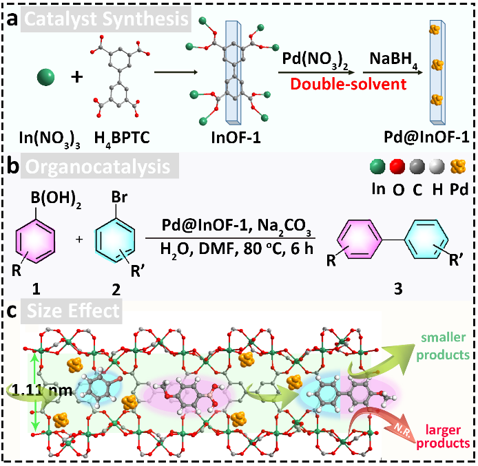 3、Pd@InOF-1复合材料提供限域空间以改善Suzuki-Miyaura反应的尺寸效应。