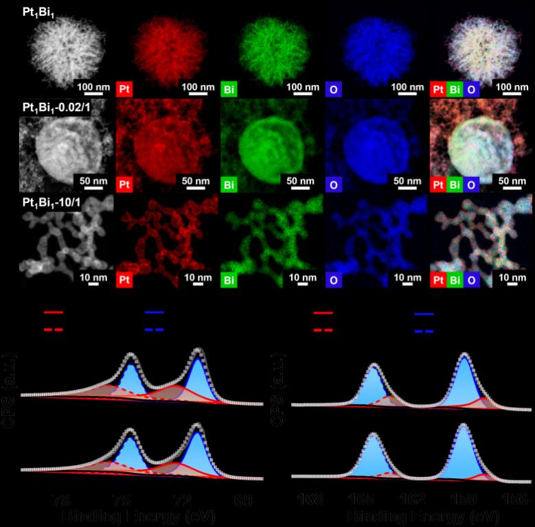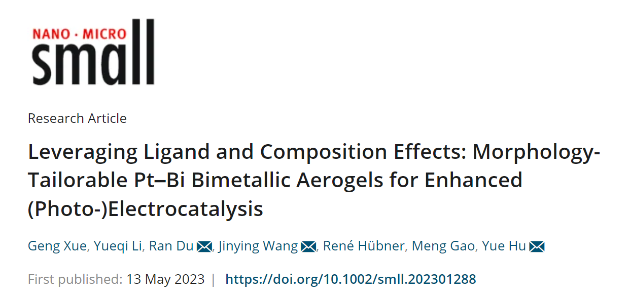 近期永利胡悦特聘教授团队联合北京理工大学杜然教授、普渡大学王进莹博士在MAs形貌调控方面取得新进展,同时对MAs的光电催化性能进行深入研究。相关成果以标题“Leveraging Ligand and Composition Effects: Morphology-Tailorable Pt-Bi Bimetallic Aerogels for Enhanced (Photo-)Electrocatalysis”(DOI:10.1002/smll.202301288)发表在Small上。在该工作中,通过协调配体和组成效应,成功制备了以0D纳米粒子、1D核壳纳米线、2D纳米片和3D微球为NBBs构筑的金属气凝胶,扩展了MAs的结构多样性。以甲醇氧化反应为模型反应,通过调整Pt-Bi气凝胶的形貌与光学特性,在300 mW·cm-2紫外线照射下,气凝胶的催化电流密度高达11.98 A·mgPt-1,比光照下的商业Pt/C高6.4倍,优于所有已报道的基于MAs的MOR电催化剂。本研究不仅为原位制备NBBs可调控的MAs提供了新的途径,而且为高性能MAs基电催化剂和光电催化剂的制备提供了新的角度。永利研究生硕士生薛耿为本文第一作者,永利3044集团官网为第一通讯单位,通讯作者为永利3044集团官网胡悦特聘教授、北京理工大学杜然教授及普渡大学王进莹博士。
