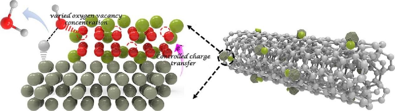 近日永利张礼杰研究员等人提出了一种具有金属/氧化物异质结构的HOR催化剂。他们构建了负载在多壁碳纳米管上的CeO2/Rh异质结构(X-CeO2/Rh@CNT,X代表热处理过程中的温度),用于碱性HOR电催化。其中,CeO2和Rh之间的电荷转移可以通过改变热解温度(如:300、400和500 oC)来调节,从而调整CeO2中的氧空位以及Rh 位点的电子密度。