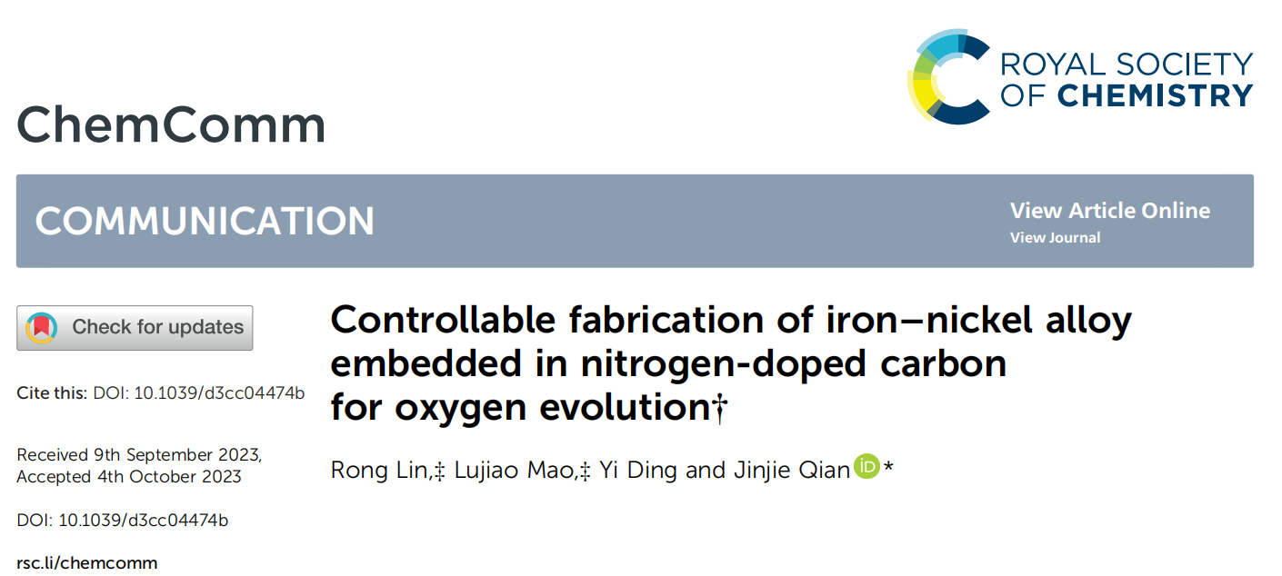 Rong Lin, Lujiao Mao, Yi Ding, and Jinjie Qian*. Controllable fabrication of iron-nickle alloy embedded in nitrogen-doped carbon for oxygen evolution. Chem. Commun. 10.1039/d3cc04474b
