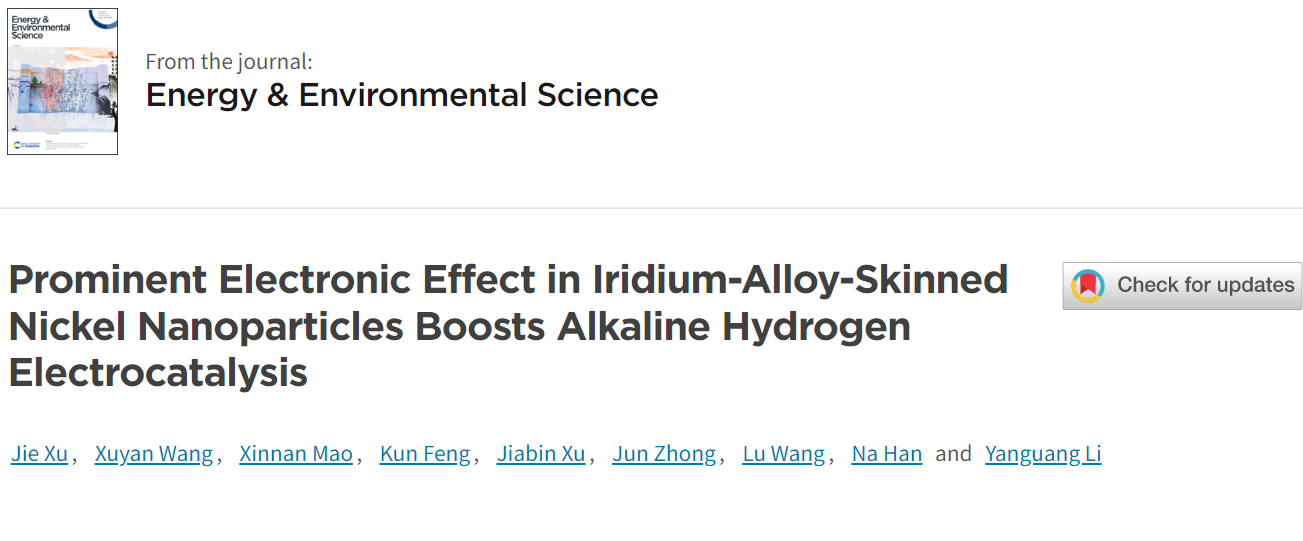 “Prominent electronic effect in iridium-alloy-skinned nickel nanoparticles boosts alkaline hydrogen electrocatalysis. https://pubs.rsc.org/en/content/articlelanding/2023/ee/d3ee02382f.