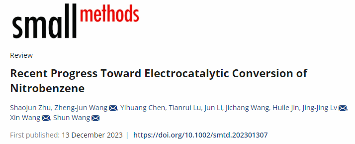 该成果以“Recent Progress Toward Electrocatalytic Conversion of Nitrobenzene”为题发表在Small Methods期刊(IF=12.4)上。永利3044集团官网为第一通讯单位,化材学院2021级硕士生朱绍均为第一作者,永利王正军博士、吕晶晶教授、王舜教授以及香港城市大学王昕教授为共同通讯作者。