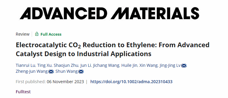 该综述以“Electrocatalytic CO2 Reduction to Ethylene: From Advanced Catalyst Design to Industrial Applications”为题发表在国际顶级期刊⟪Advanced Materials⟫期刊上。永利3044集团官网为第一通讯单位,我院2021级硕士生陆天睿、永利3044集团官网博士后徐婷为共同第一作者,我院吕晶晶教授、王正军博士、王舜教授为共同通讯作者。