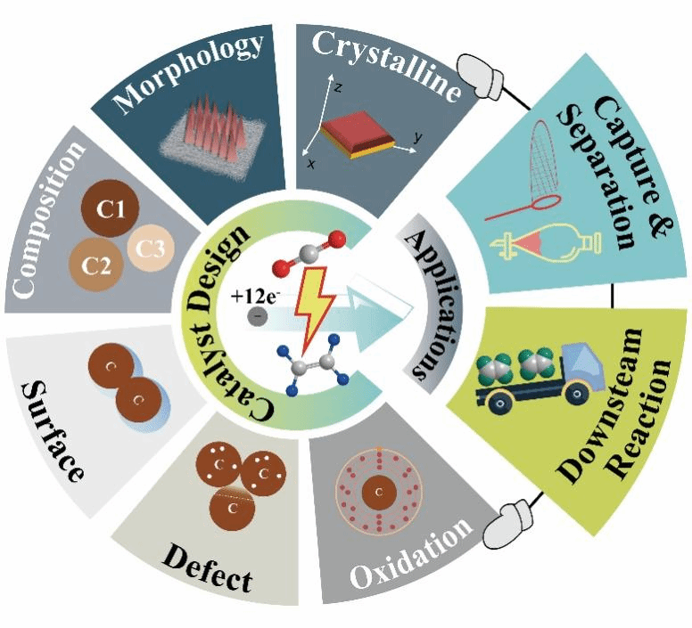 图1:催化剂设计、CO2捕获与分离、乙烯工业应用的示意图