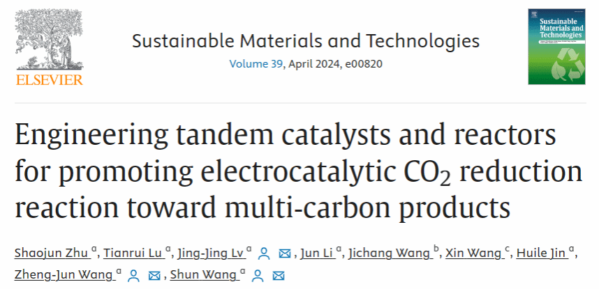 该成果以“Engineering tandem catalysts and reactors for promoting electrocatalytic CO2 reduction reaction toward multi‑carbon products”为题发表在⟪Sustainable Materials and Technologies⟫期刊(IF=9.6)上。永利3044集团官网为第一通讯单位,我院2021级硕士生朱绍均为第一作者,永利吕晶晶教授、王正军博士、王舜教授为共同通讯作者。