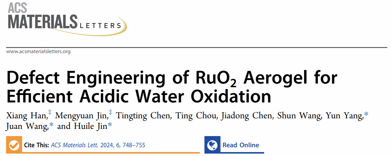 相关论文以“Defect Engineering of RuO2 Aerogel for Efficient Acidic Water Oxidation”为题发表在ACS Materials Letters上。永利3044集团官网为第一通讯单位,永利本科生韩翔为第一作者,永利金辉乐研究员、王娟副教授和杨云研究员为通讯作者,相关工作受到国家自然科学基金项目的资助。