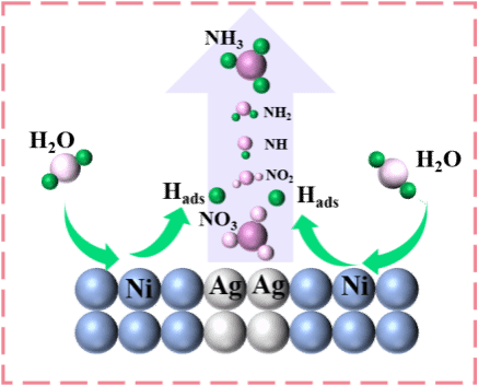 (2)设计和开发AgNi新型催化剂用于调控电催化硝酸盐合成氨的反应路径,实现低电位下高效合成氨