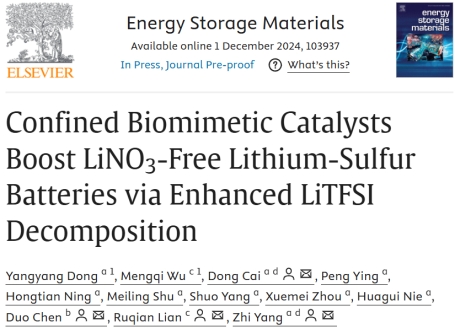 相关研究结果发表于近期的《Energy Storage Materials》(IF19.10,中科院1区)(DOI: 10.1016/j.ensm.2024.103937),永利3044集团官网为第一通讯单位,永利2022级博士生东洋洋和吉林大学博士生吴梦琪为共同第一作者,永利杨植教授、蔡冬博士和吉林大学连如乾教授、南京航空航天大学陈铎教授为该论文共同通讯作者,相关工作受到国家自然科学基金(22309136、22109119、51972238)、浙江省自然科学基金(LQ22B030003)、永利3044集团官网博士创新基金(3162023001002)、浙江省新苗人才计划(2024R429B042)等项目的资助。