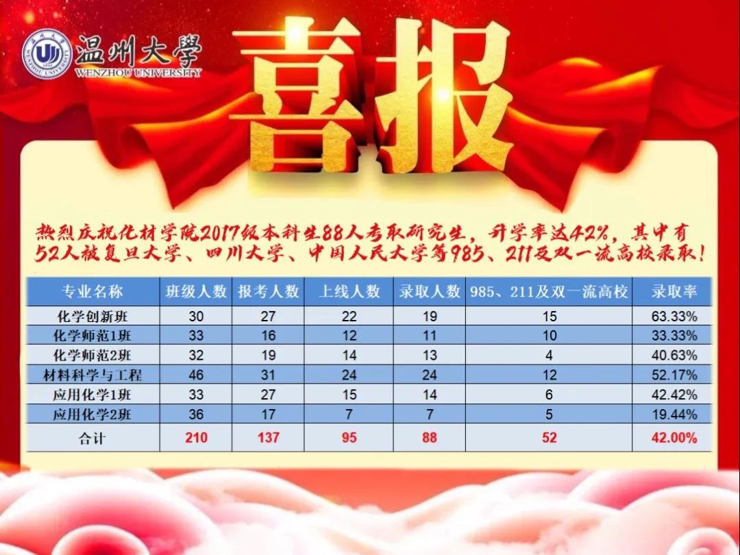 2021年全国硕士研究生录取工作已经结束,永利3044集团官网2021届学生考研工作再创佳绩。学院2021届毕业生共210人,137人报考研究生考试,95人过国家复试线,过线人数达到报考人数的69%;其中88人成功被录取,录取人数达到报考人数的64%,升学人数占全体本科毕业生数的42%;有52人被复旦大学、四川大学、中国人民大学等985、211及双一流高校录取,考研录取率和考取名校人数创历史新高,这一切离不开学院良好的学风、院风。