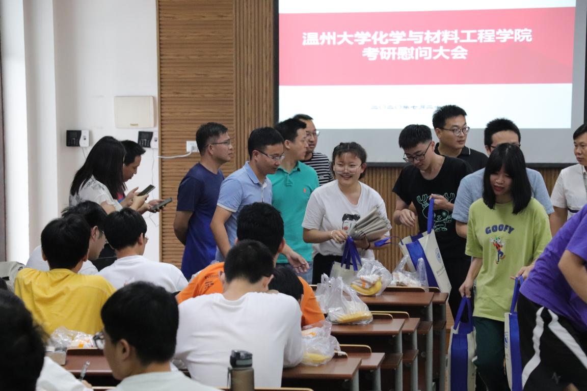之后,在学工办辅导员老师的组织下,将学院精心制作的爱心礼包分发给同学们,一本本“薪火相传”计划的笔记,一份份暖心加油包小食,一句句叮咛嘱咐的话语,无不体现着学院对考研学子细致的关怀与殷切的期盼。学院一直高度重视学生考研工作,在思想、学习和生活等方面为考研学生提供指导和帮助,并通过广大考研学生的示范效应在学生中积极营造浓郁的学习氛围,有力促进了学院优良学风的形成和发展。