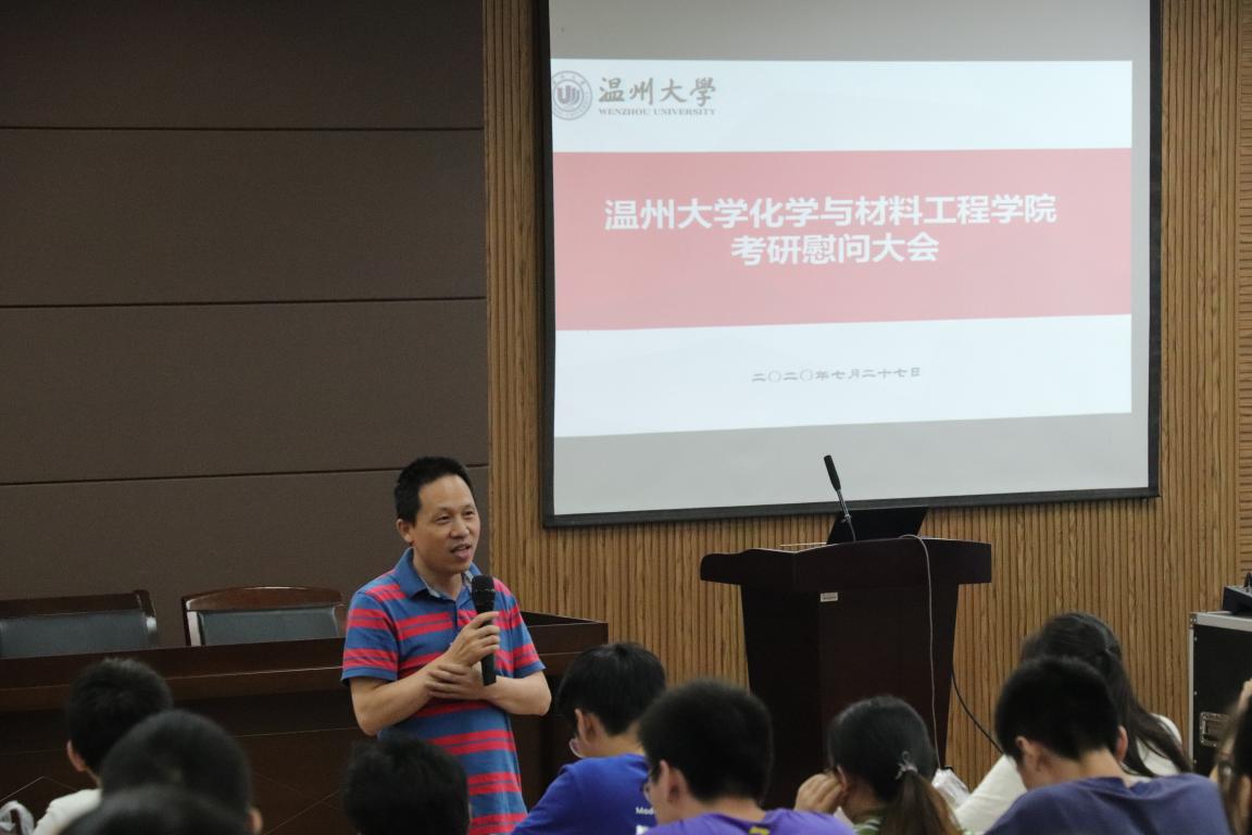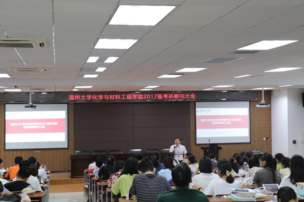 周敬业副书记作为本次活动的主持人,先对学生们选择考研这条路表示肯定,并简单表述了去年化材学院的优异考研成绩,以增强同学们的考研信心。
