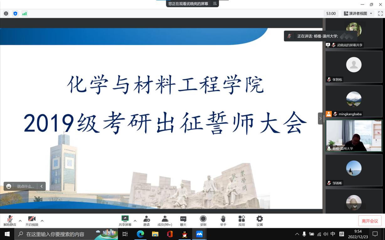 2022年12月23日上午,永利3044集团官网2023届考研出征誓师大会在线上举行。学院领导班子、各系主任、2019级班主任、学生科辅导员以及全体2023届考研学子参加本次誓师大会。