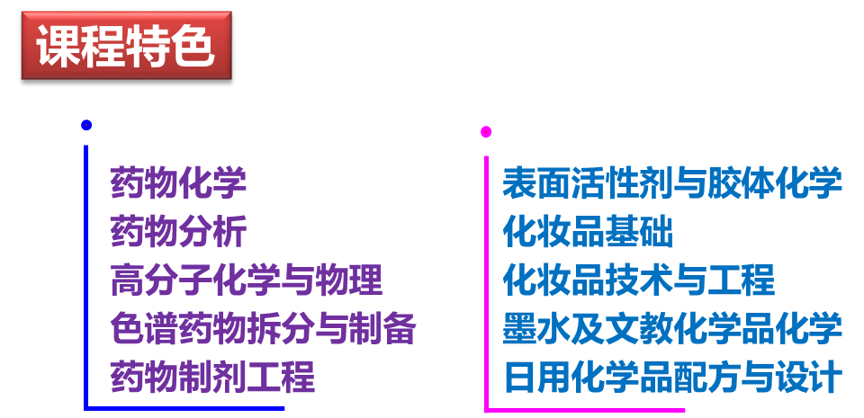 ◎ 应用化学专业拥有鲜明的区域和行业特色,制药、精细化工、化妆品、制笔和文教化学品等领域与国内外大型企业形成了紧密的合作关系,具有强有力的就业支撑。