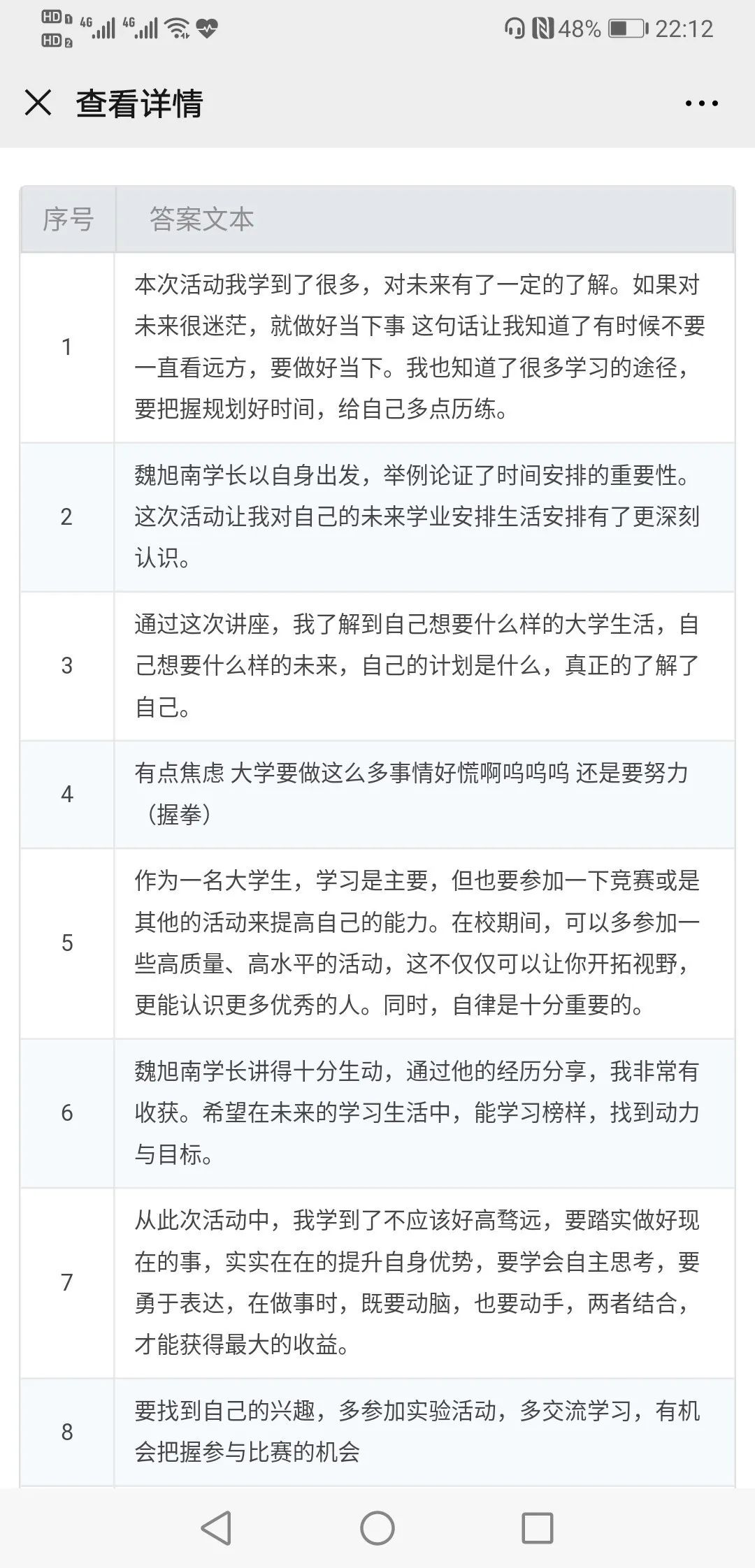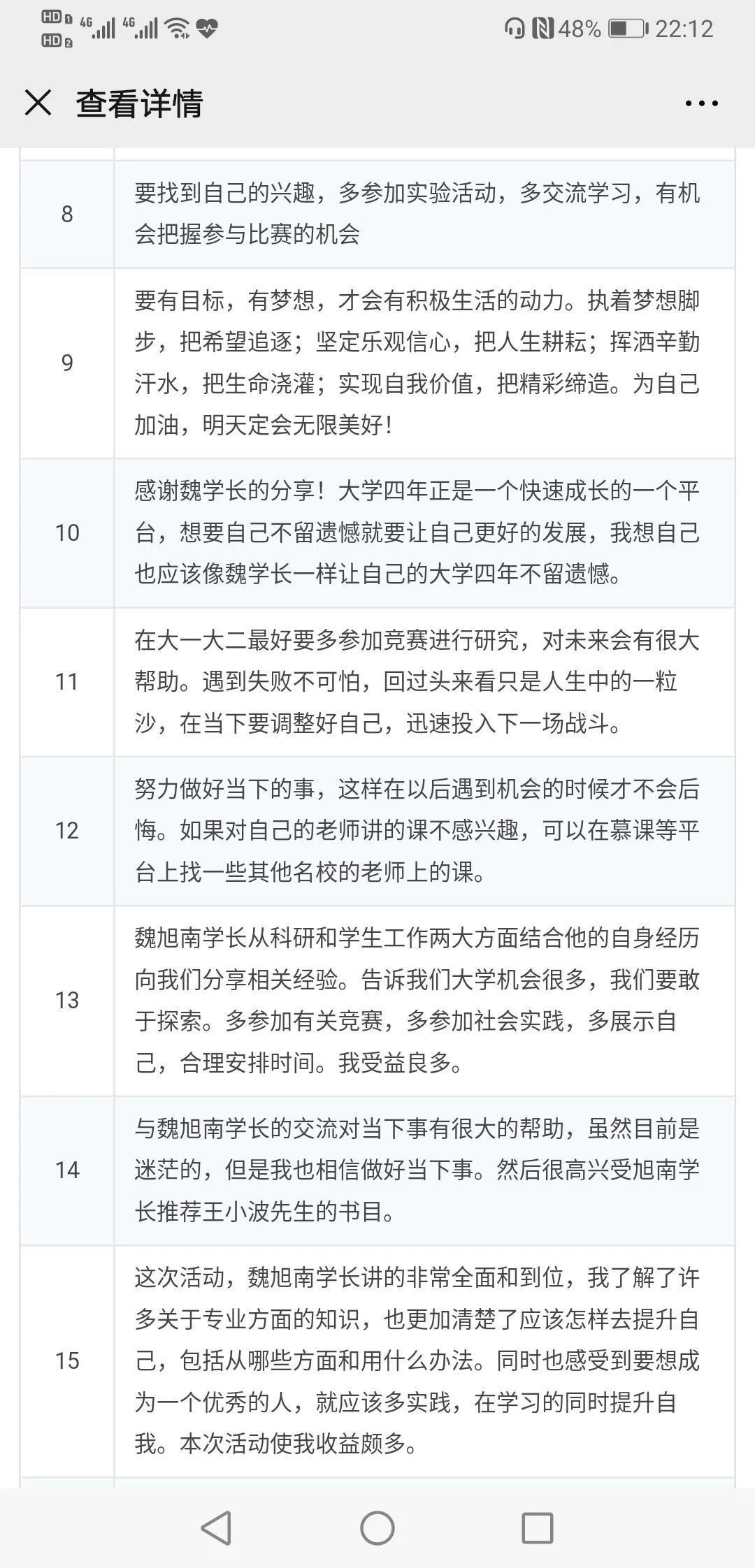 3、我所认为的学生工作,不是我们抽出很多时间去工作,我们首要任务是学习,但是也需要学会终生学习,可以通过这个过程培养自己在未来工作时还能静下来学习的习惯。而且要学着从这些经历中去反思,通过这个平台去看看各行各业的人做什么,我们不必精通,但是需要去了解,尤其是未来想要成为老师的人。