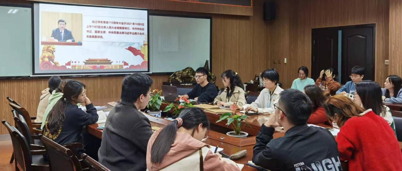 化材学院研究生第二党支部于2021年10月26日在11B204召开十月份组织生活会。为缅怀孙中山先生等革命先驱的历史功勋,学习和弘扬他们为振兴中华而矢志不渝的崇高精神,提高支部党员素质修养,化材学院研究生第二党支部召开十月份组织生活会,贯彻学习习近平总书记在纪念辛亥革命110周年大会上的讲话精神。此次学习由周宇峰同志领学,支部全体成员参与学习。