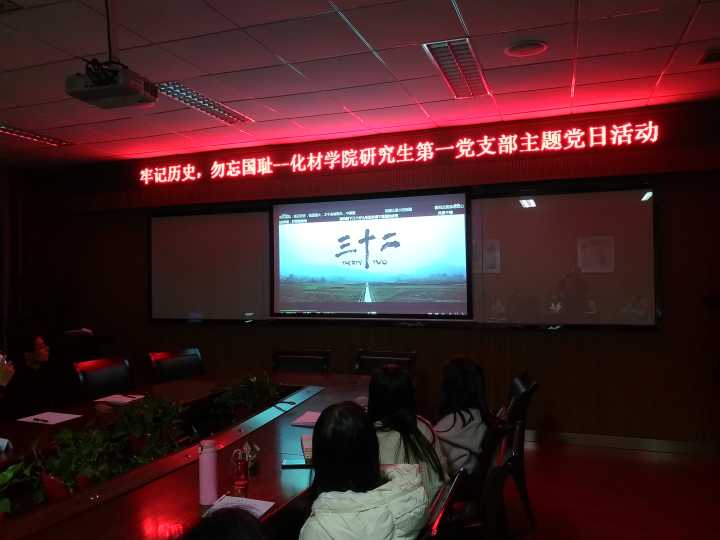 2017年是侵华日军南京大屠杀发生的第80年,12月13日是南京大屠杀死难者国家公祭日。为使大家正视并铭记这一段苦难历史,能够更好地肩负起责任,12月13日晚六点半,化材学院研究生第一党支部在化材楼11B-204会议室举行以“牢记历史,勿忘国耻”为主题的党日活动。研究生党支部指导老师邹涌彬以及支部全体党员和入党积极分子参加这次活动。活动由邹涌彬老师主持。