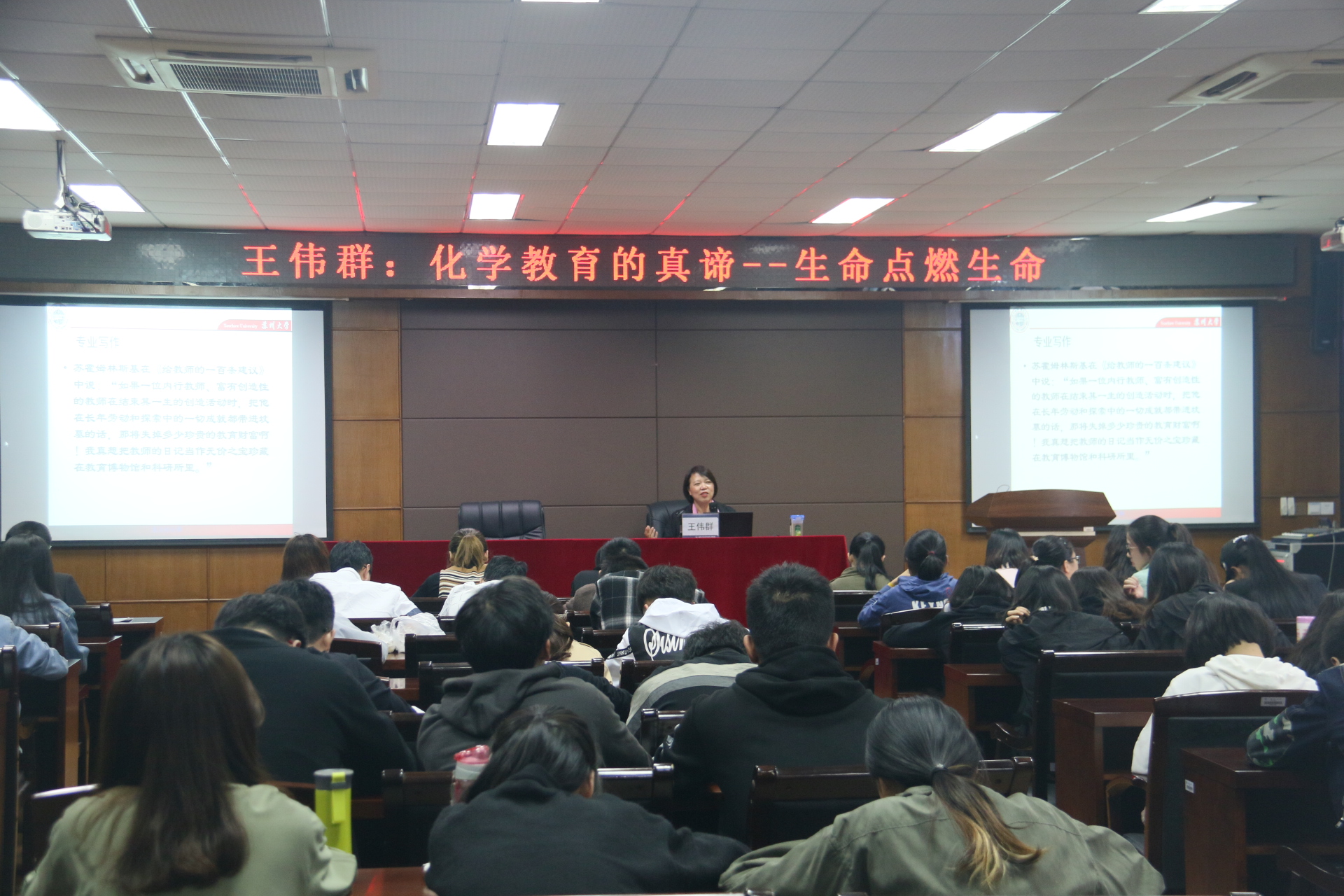 10月11日下午,永利3044集团官网在化材楼11B-208会议室举办了第80期“责任·成长·成才”讲堂。永利82级校友、苏州大学材料与化学化工学部的王伟群教授给永利师范生带来了“化学教育的真谛——生命点燃生命”为主题的校友分享会。